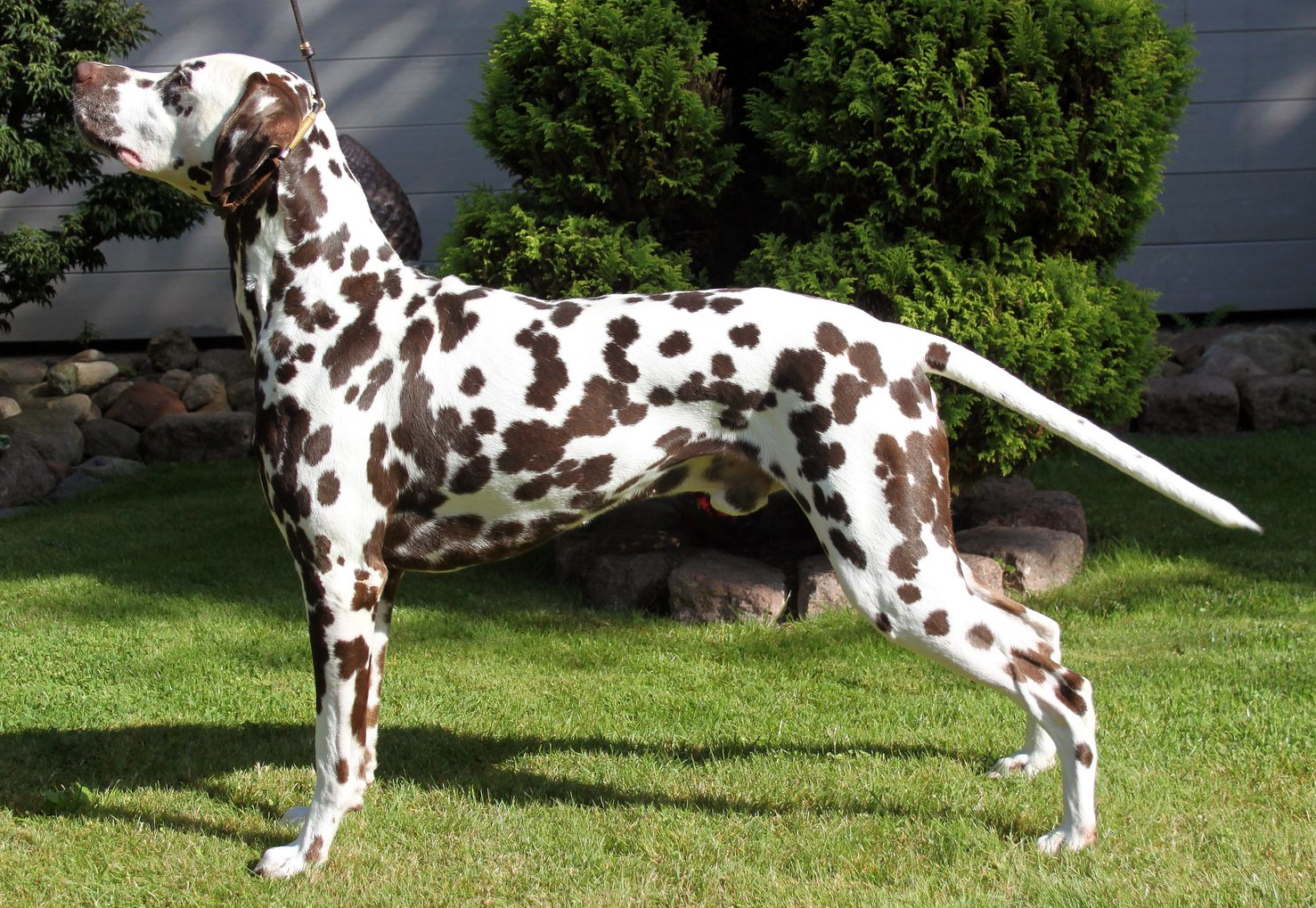 Kopf mesozephal, prismatischer Form mit Hängeohren. Der Körper ist rechteckig, kräftig, muskulös und charakteristisch markant getupft. Die Bewegung muss elegant sein. Die Geschlecht Differenz muss erkennbar sein.